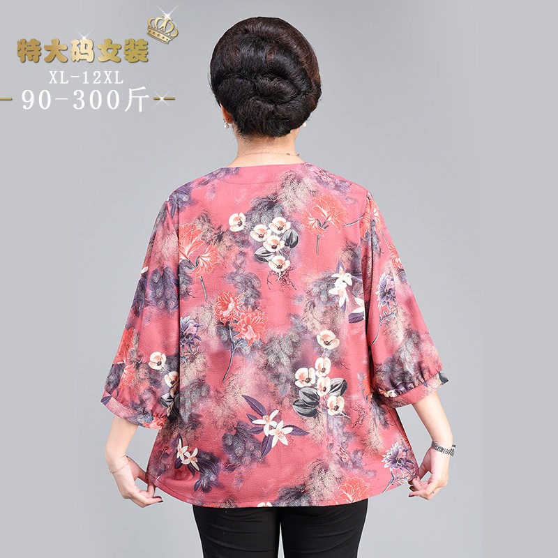 胖老太太加肥加大码夏装200斤中老年女装小衫上衣T恤胖妈妈老年人