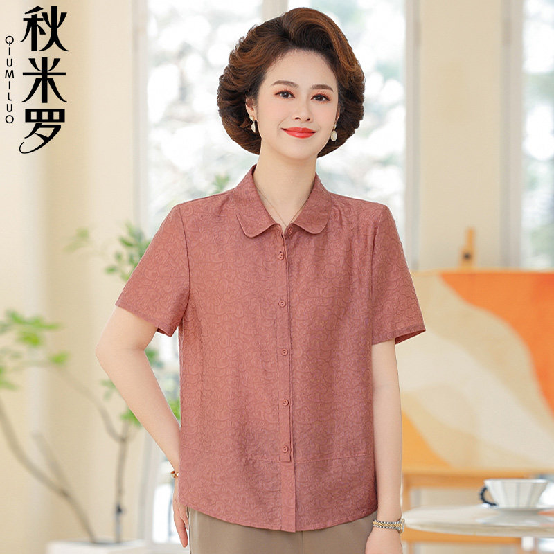 妈妈夏季新款冰丝凉感短袖衬衫40岁50人翻领上衣中老年女装小衫薄