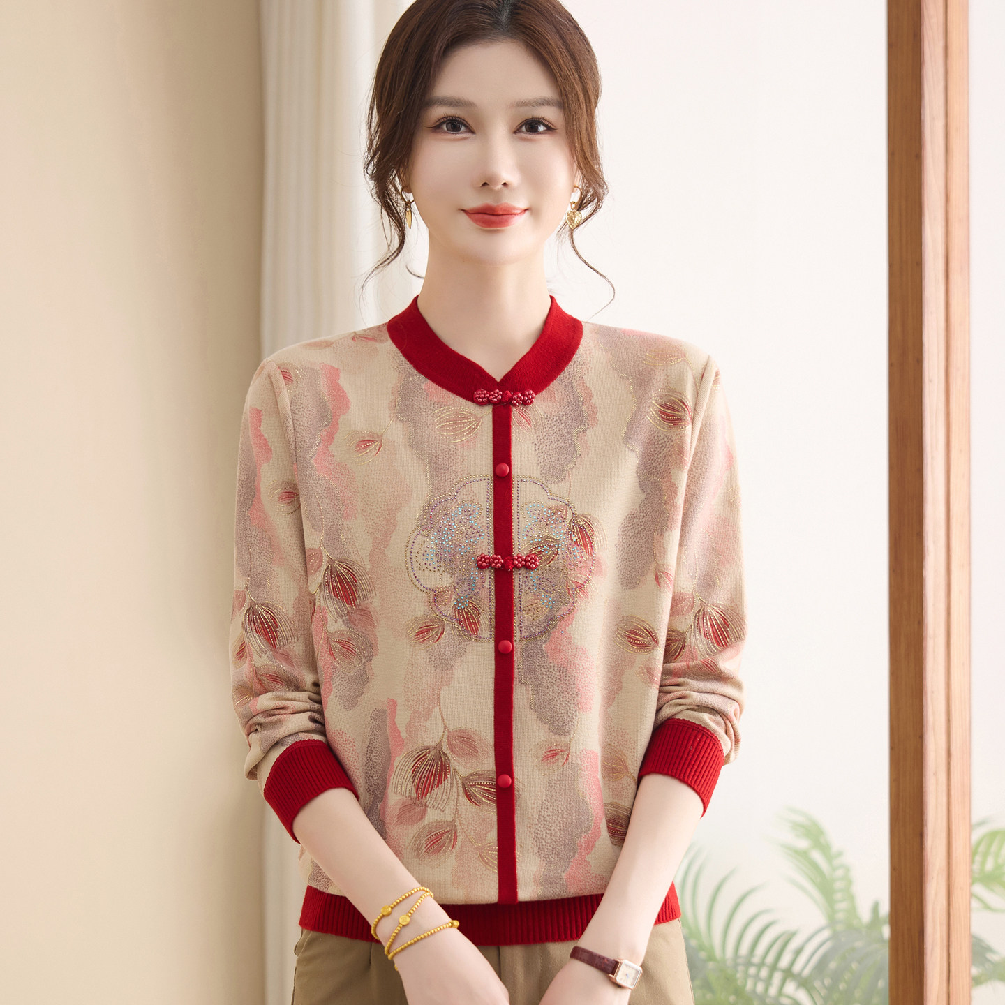 妈妈新中式打底衫2025新款中年女装小衫时尚T恤长袖春秋上衣洋气