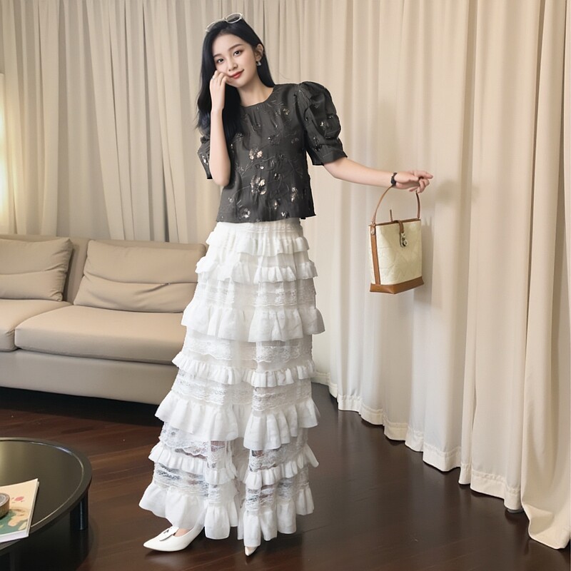 胖MM加肥微喇袖口蕾丝花上衣法式气质高级感小众设计大码女装小衫