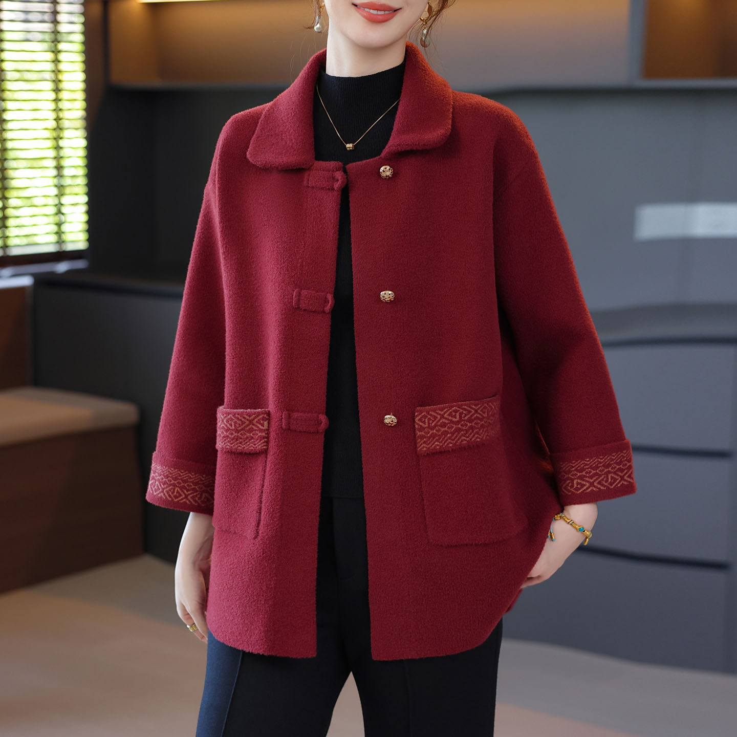 - 中老年女装毛呢外套冬