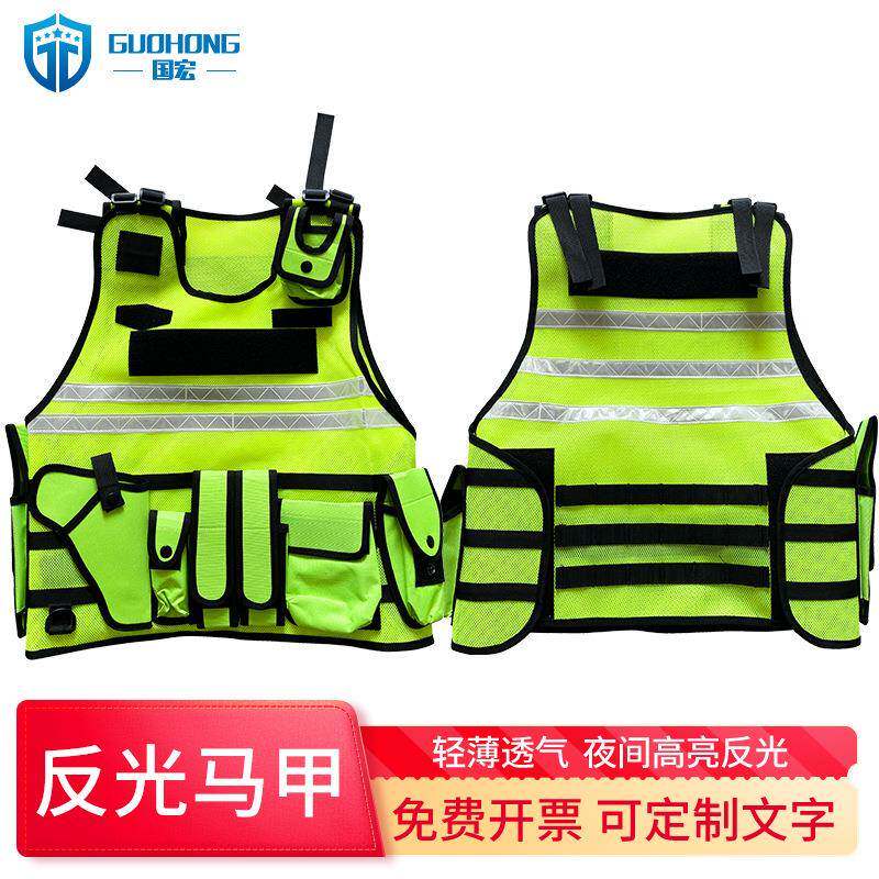 安全防护马甲荧光反光防刺服背心多口袋荧光防护服多功能快拆背心
