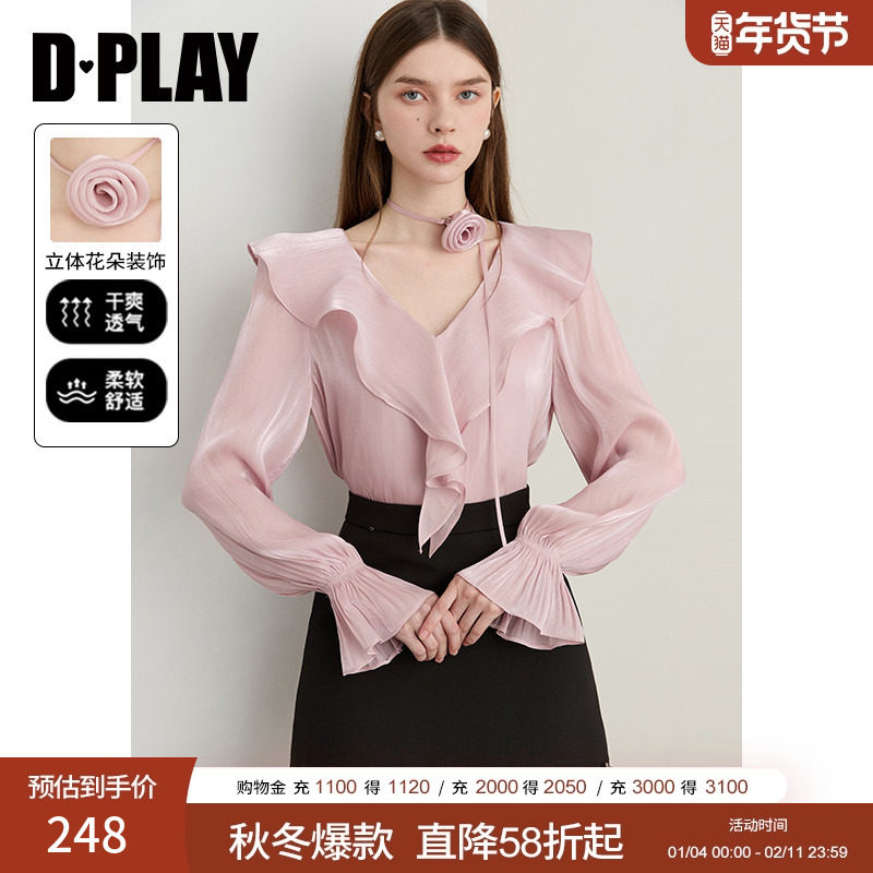 DPLAY【珠光星辰系列】粉色衬衫女士小衫春季法式雪纺衬衣上衣