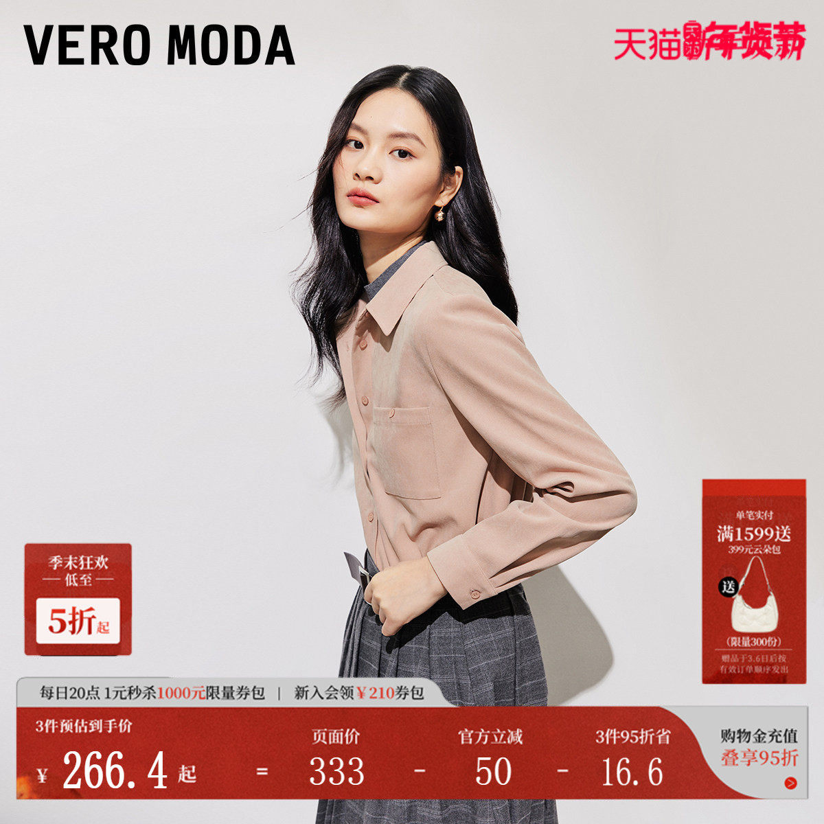 Vero Moda衬衫女2025秋冬新款知识分子翻领显瘦粉色上衣325405007