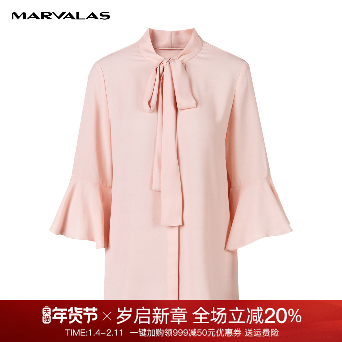 秋水伊人断码清仓粉色衬衫女装早秋法式小资上衣v领系带收腰衬衣