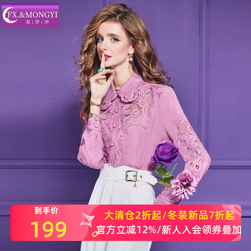 菲梦伊镂空钩花粉色衬衫女长袖秋装法式别致绝美设计感OL气质上衣