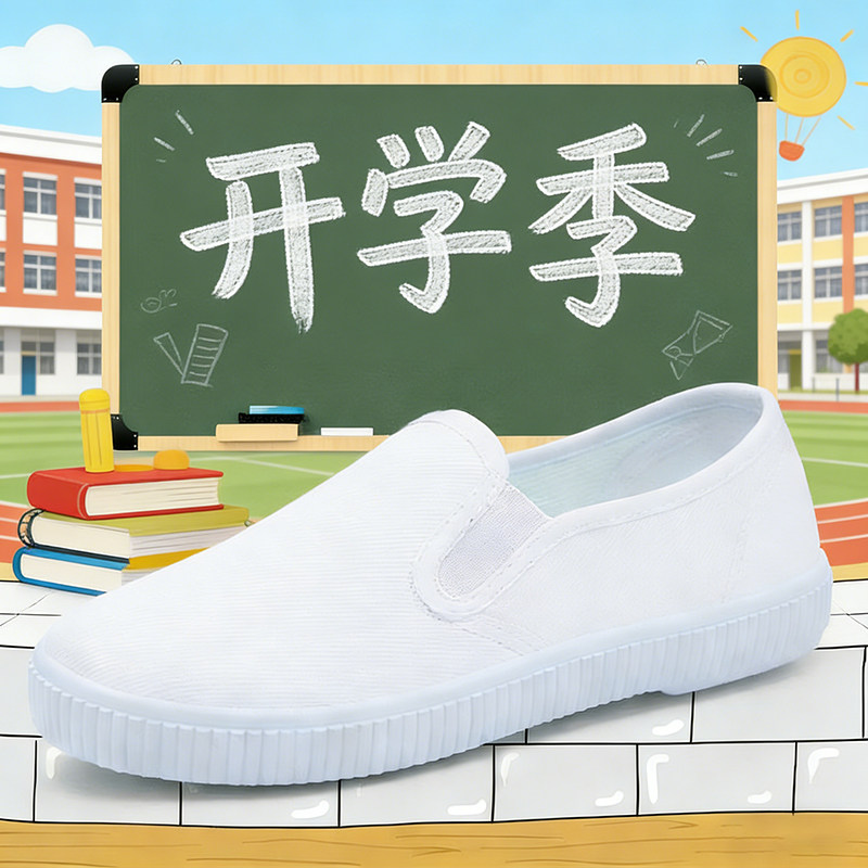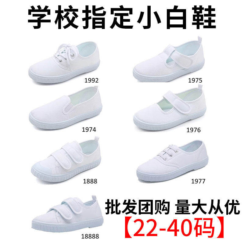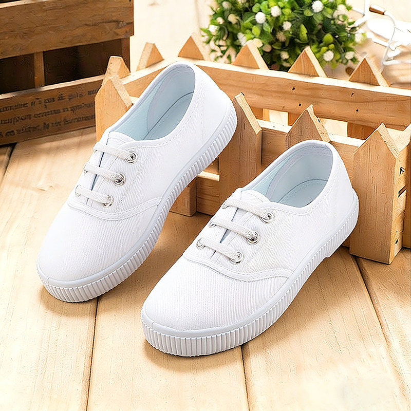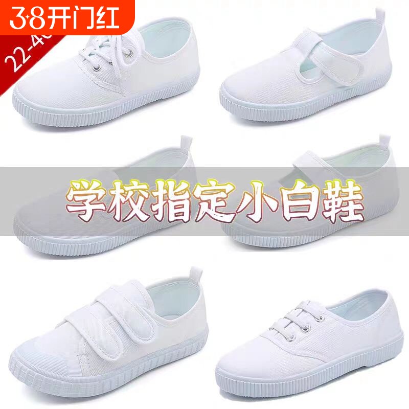 学校小白鞋女生帆布鞋室内运动鞋小学生白色球鞋男生白布鞋表演鞋