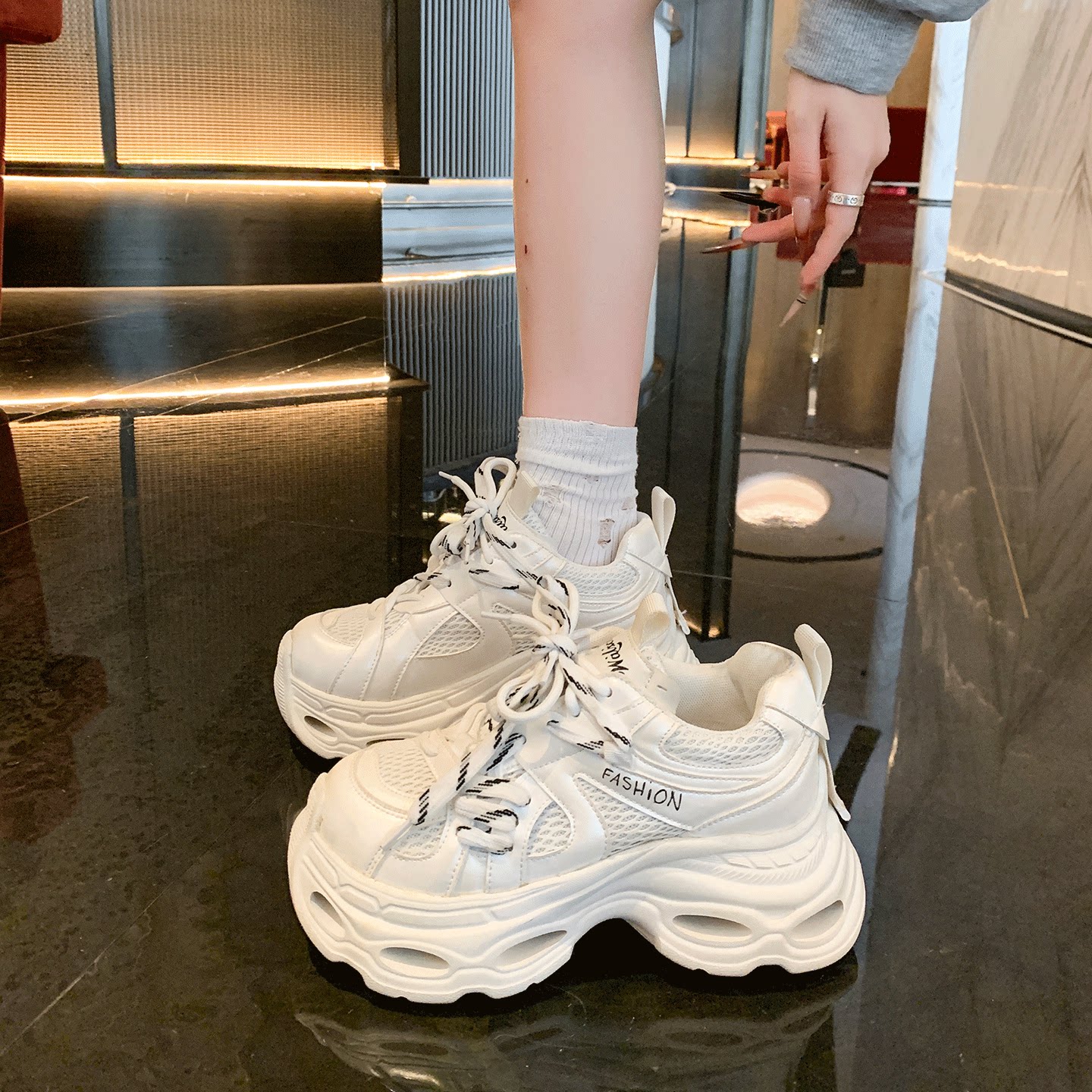 - 镂空内增高小白鞋