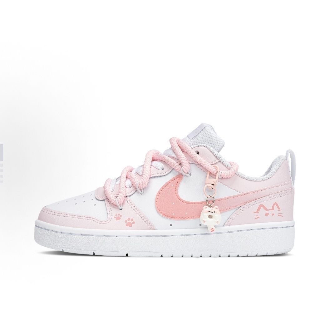 NIKE/耐克Court Borough桃气奶喵定制球鞋低帮百搭板鞋女款粉白色