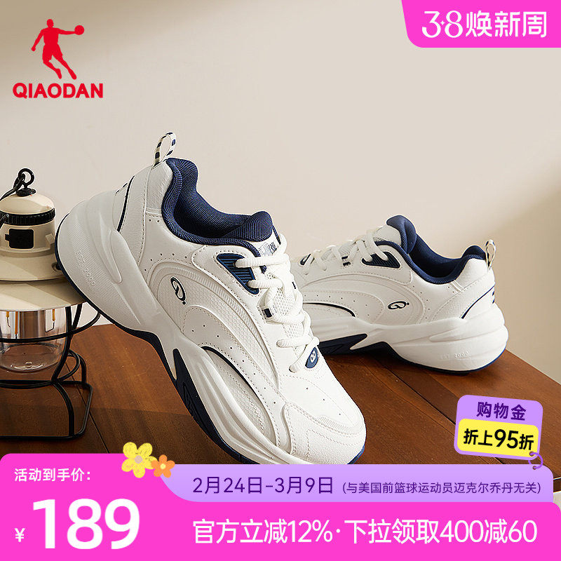 源生乔丹休闲鞋女鞋2025冬季网球鞋革面防水保暖运动鞋白色老爹鞋