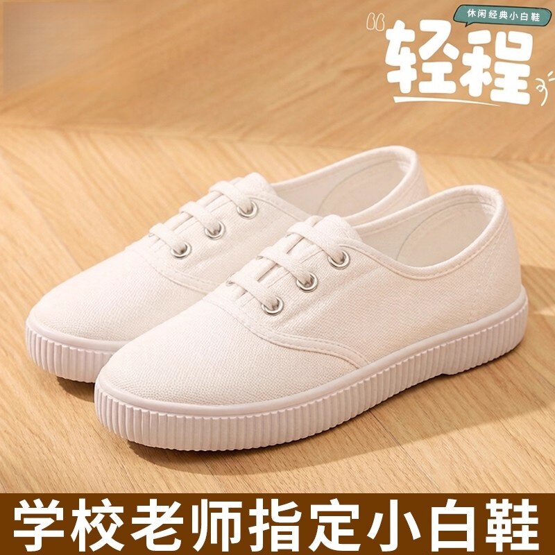 小白鞋女生白布鞋帆布鞋初高中生白色球鞋学校室内练武术运动鞋男