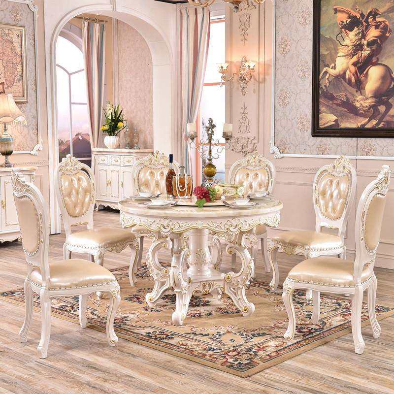 大理石简约现代餐厅圆形省空间6人饭桌家用天然全实木餐桌椅组合