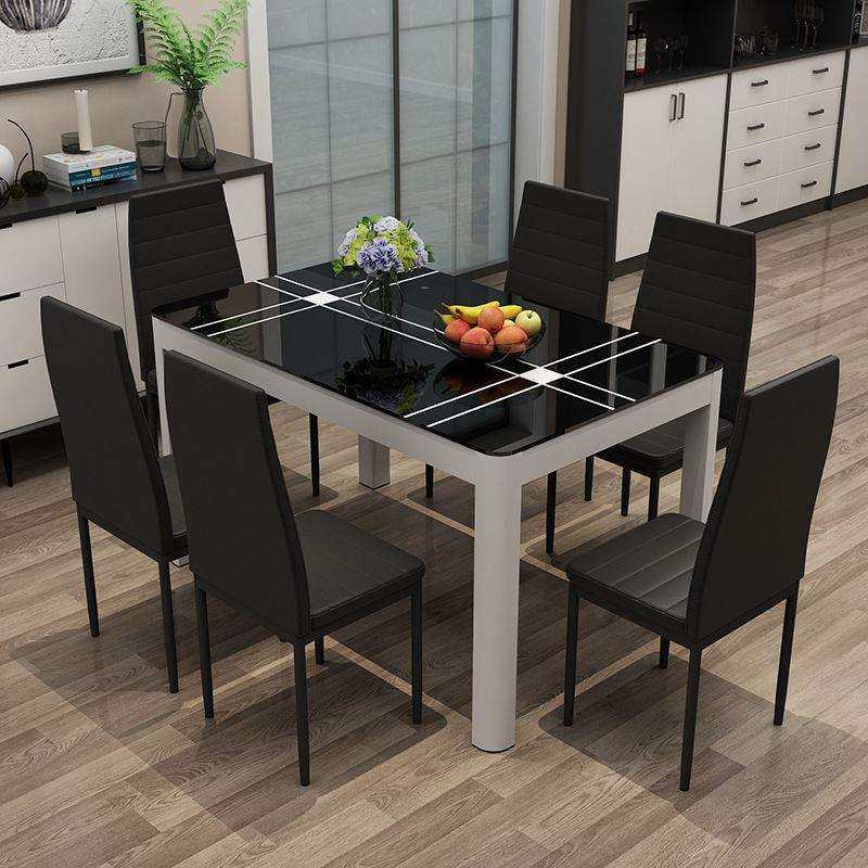 家用吃饭桌子小户型钢化玻璃餐桌椅组合4人6长方形简约现代快餐桌