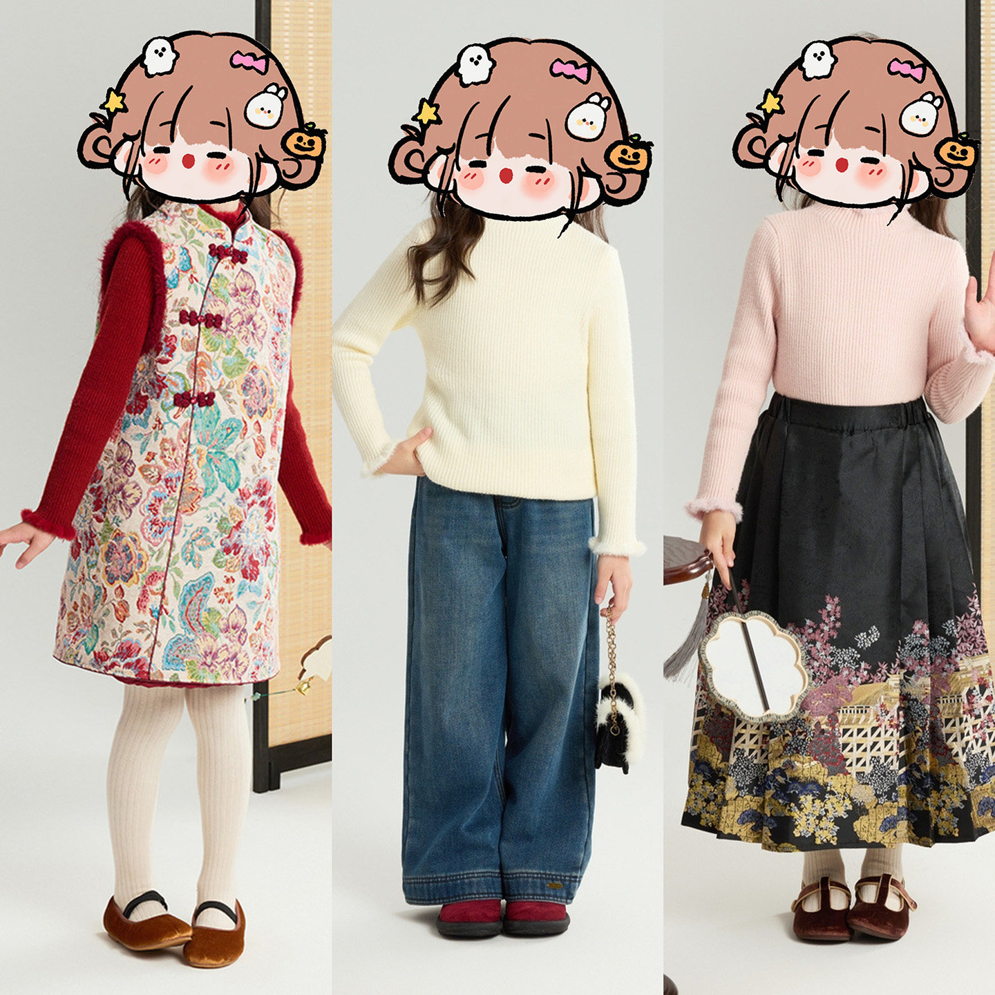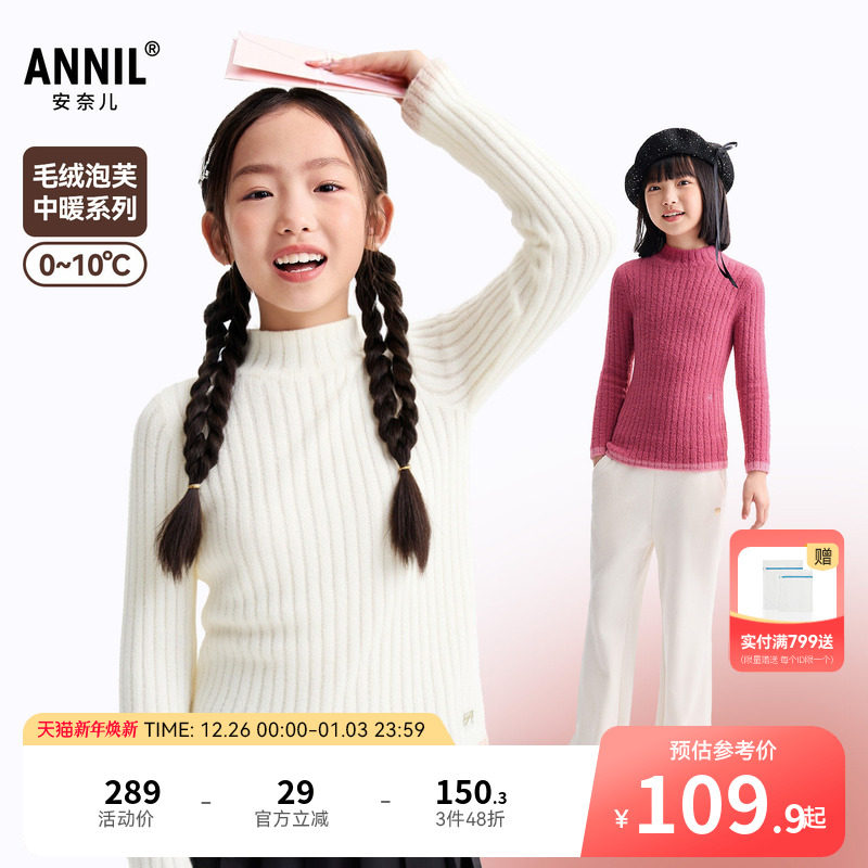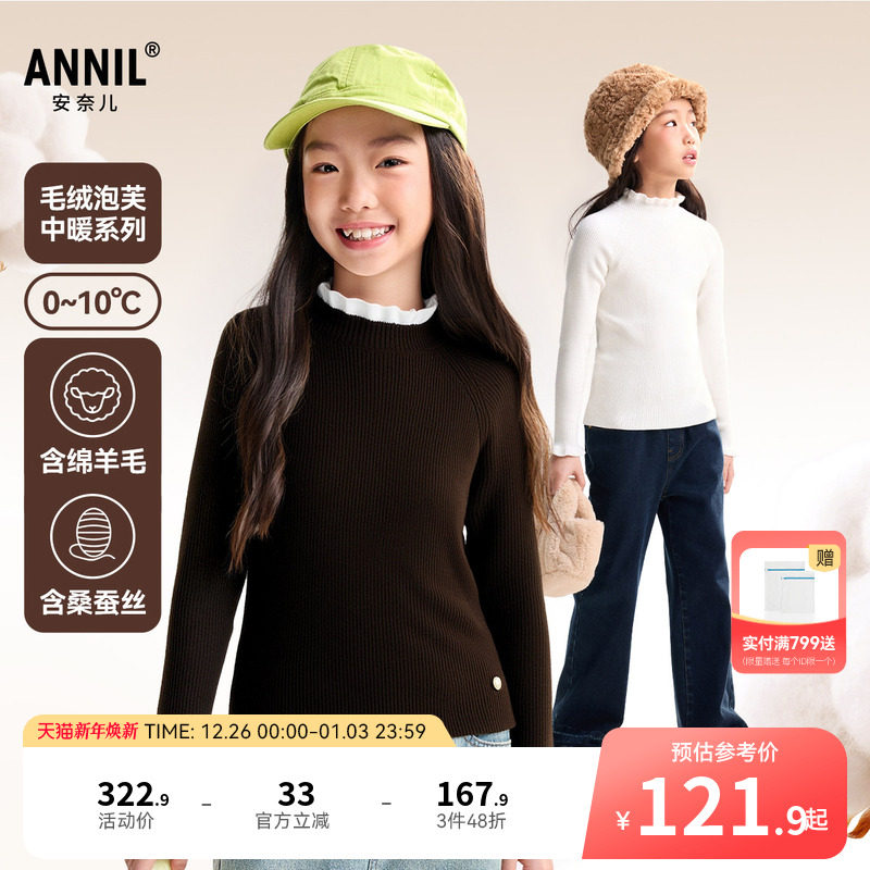 安奈儿童装女童中领长袖毛衣针织衫2025冬新款甜美保暖弹力修身