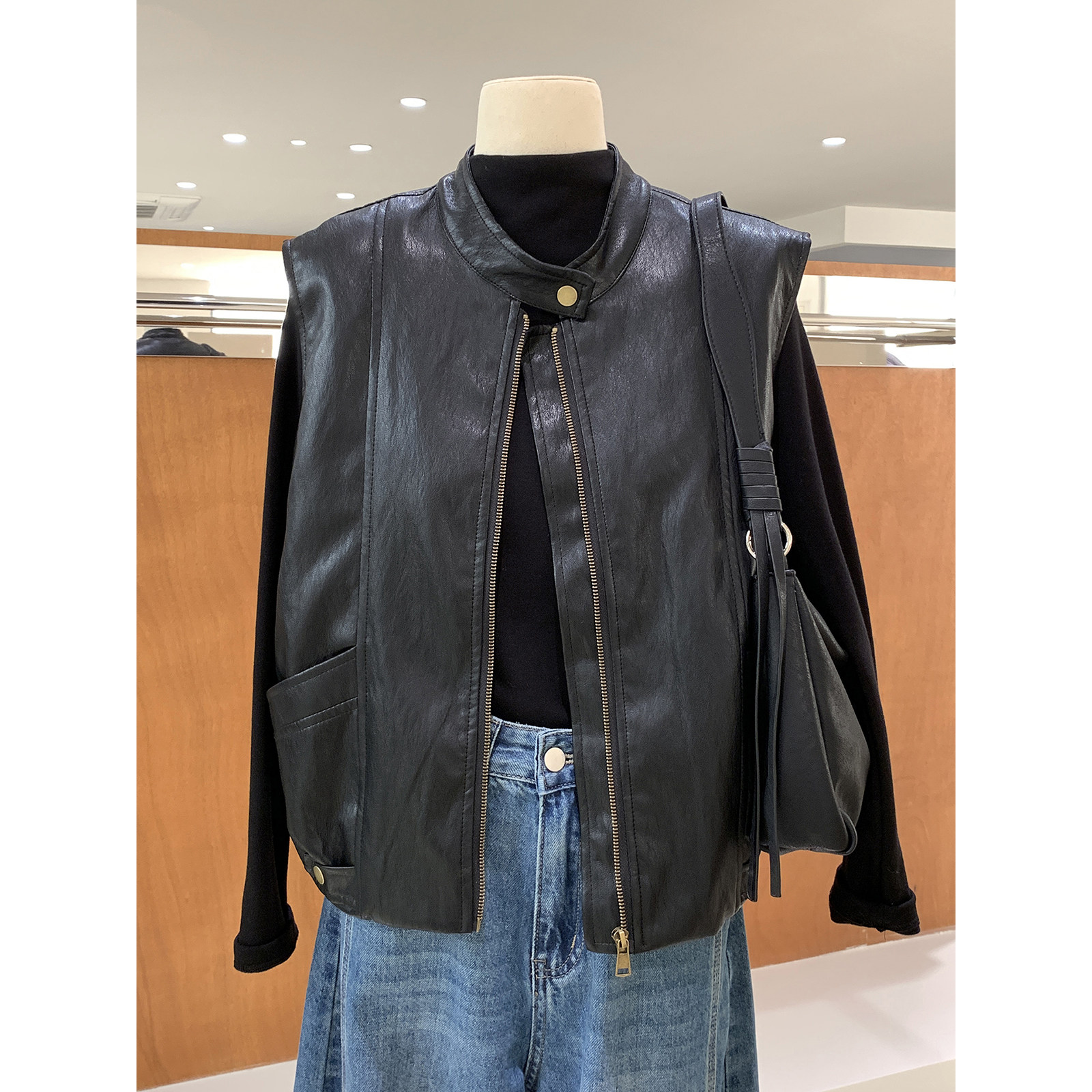 2025秋季新款皮马甲女宽松休闲机车小个子柔软蛋白皮马夹轻奢上衣