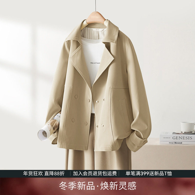 IHIMI海谧实穿短款风衣女秋季时尚减龄短外套休闲小个子宽松上衣