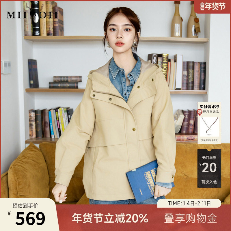 IHIMI海谧春秋爆款连帽风衣2025秋季新款外套女收腰短款休闲秋装