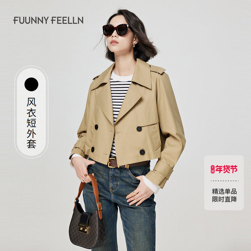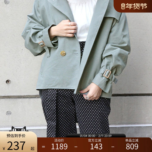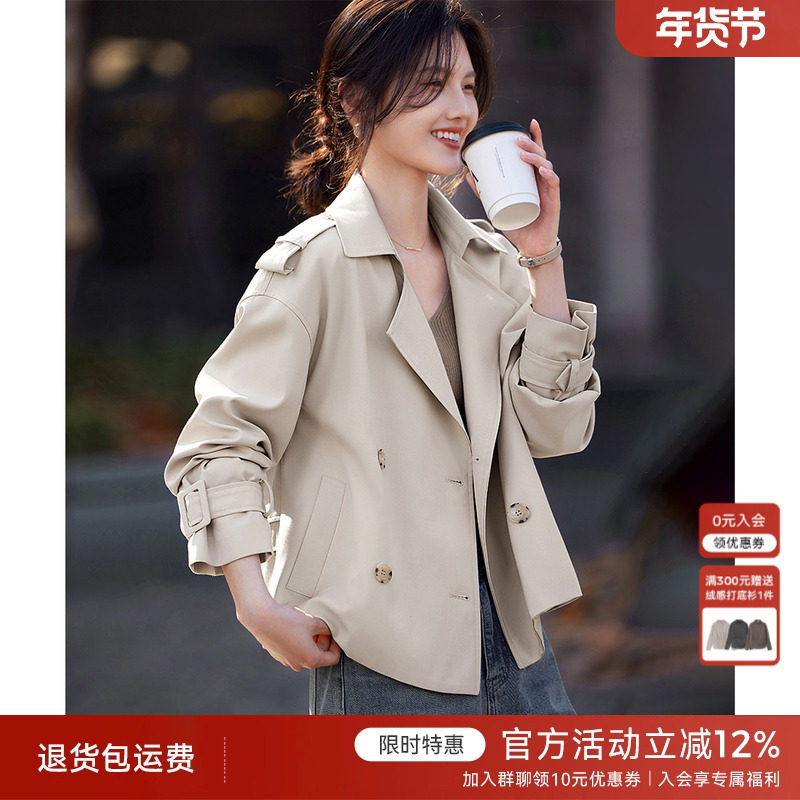 RANDA 短款风衣女秋季新款双排扣翻领宽松小个子外套 BB01128
