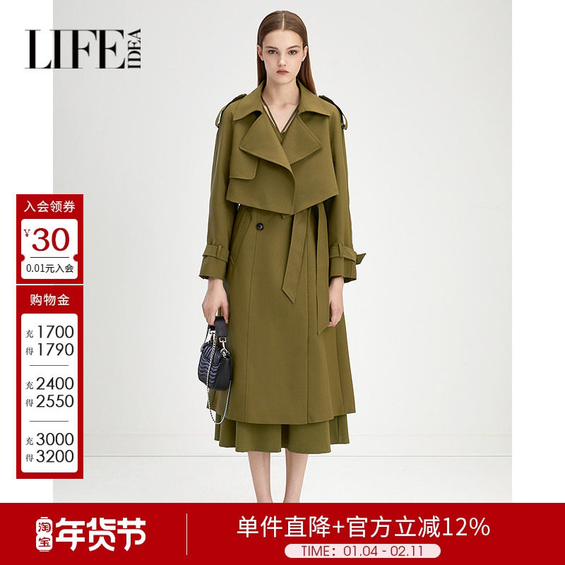 莱芙艾迪儿长款风衣女可拆卸短外套2件套设计感秋季气质减龄大衣