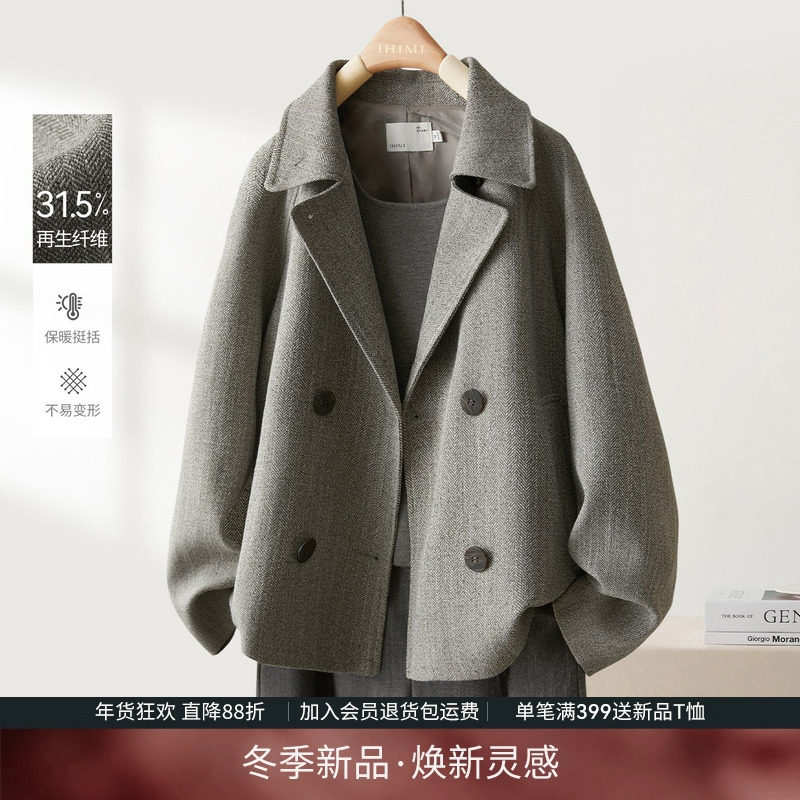 IHIMI海谧人字纹北欧风夹克风衣女秋季简约时髦翻领高级感短外套