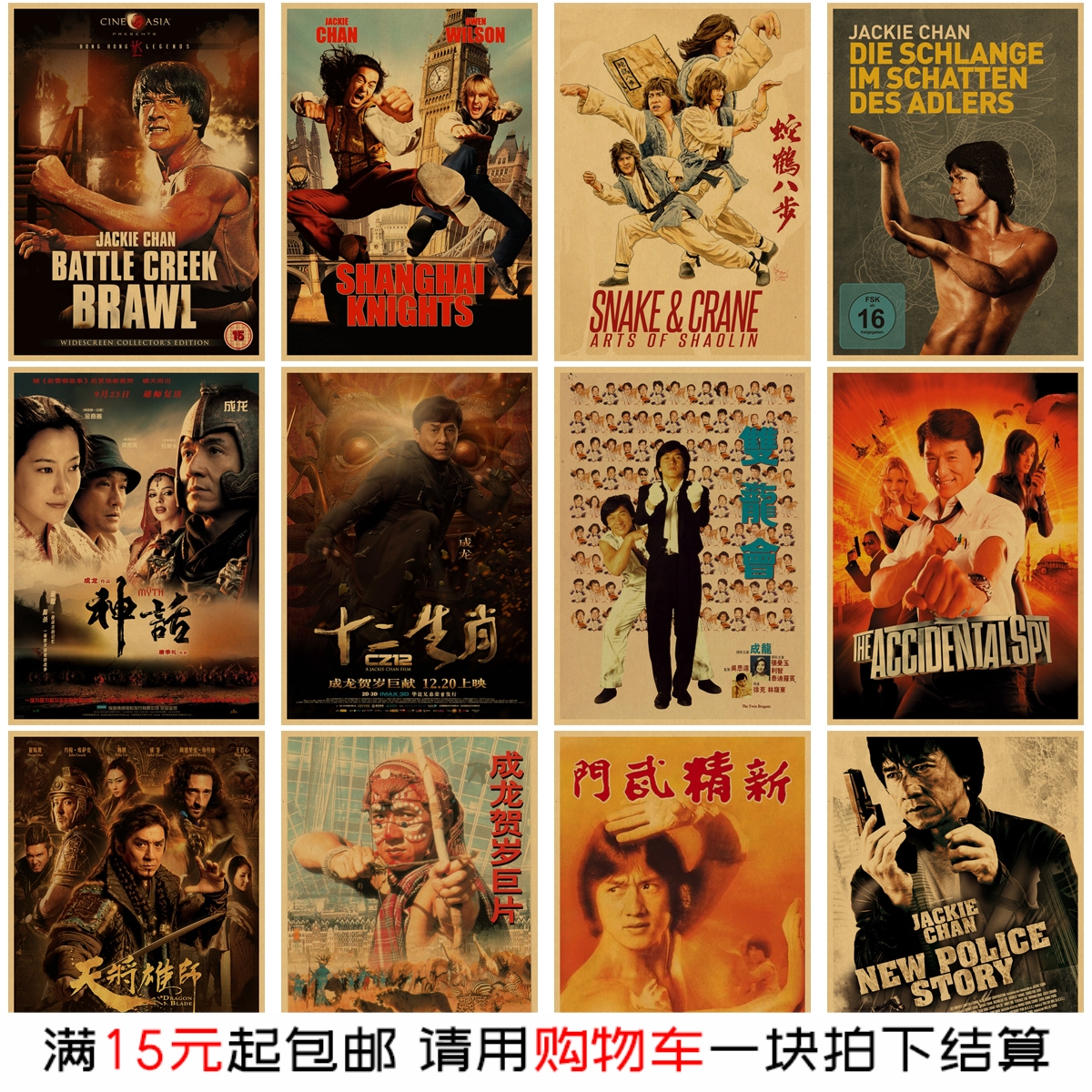 成龙 经典电影明星海报 复古牛皮纸装饰画宿舍改造墙贴画遮丑墙画