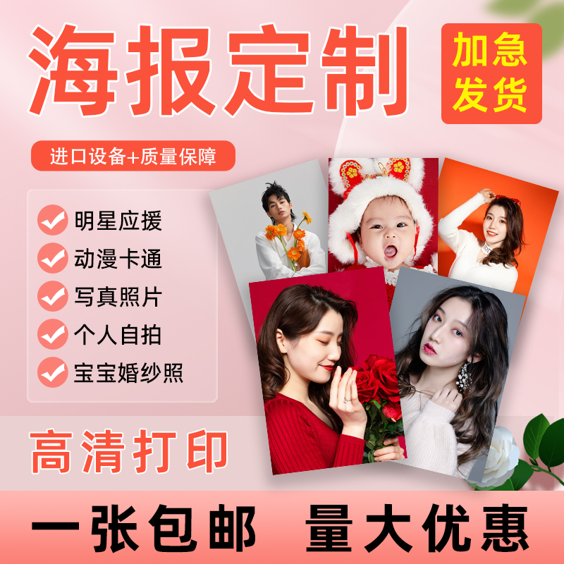 海报定制明星照片动漫挂画图片打印宿舍墙贴制作写真宝宝婚纱贴纸