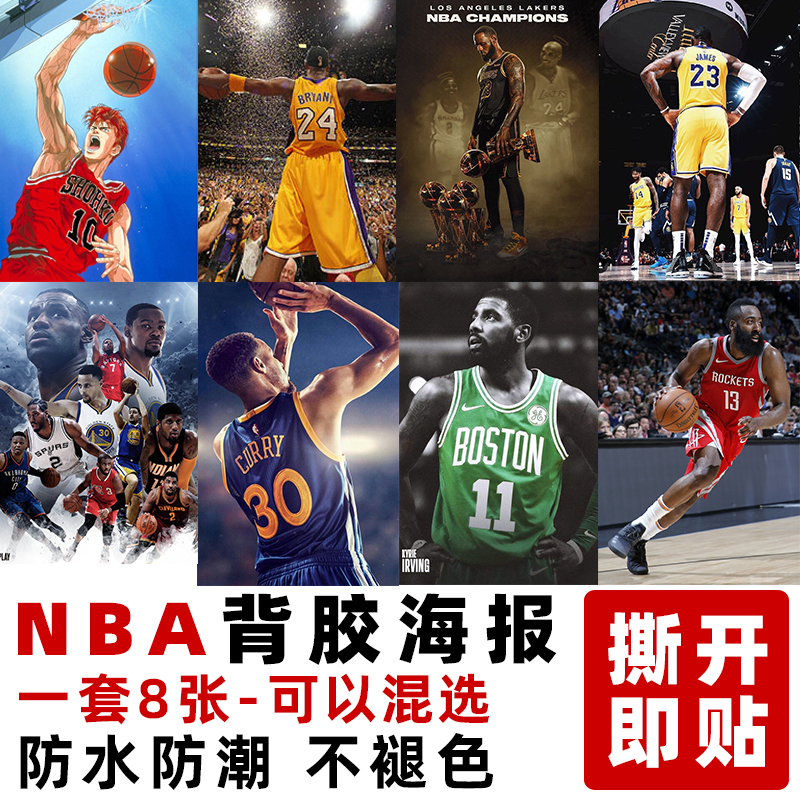 NBA篮球明星海报欧文詹姆斯科比哈登乔丹艾佛森库里灌篮高手自粘