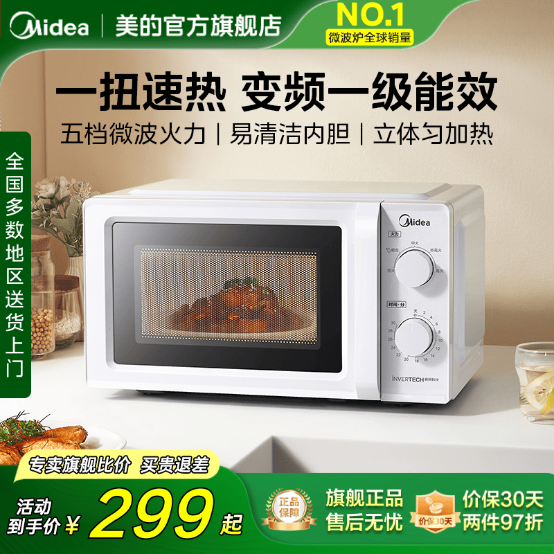 政府补贴美的变频平板微波炉家用小型迷你一级能效实用正品PM20M3