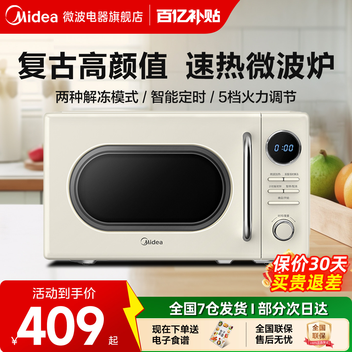政府补贴美的家用小型迷你一人复古微波炉奶油风实用官方正品M2F