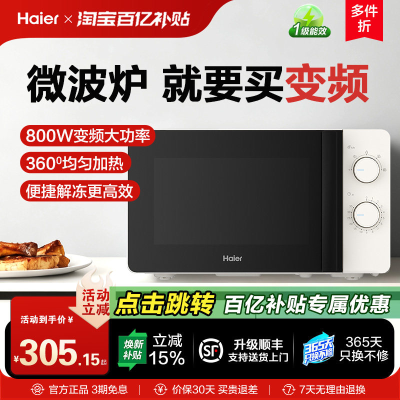 海尔变频微波炉800W旋转加热多功能小型家用大火力易清洁一级能效