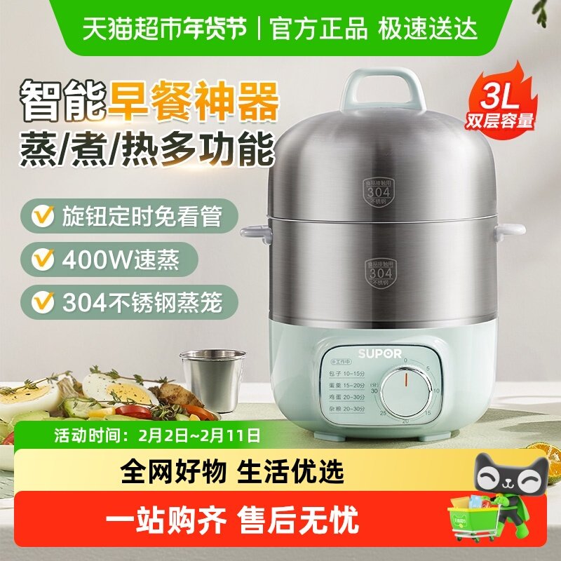 苏泊尔蒸蛋煮蛋器家用304不锈钢自动断电定时双层小型神器早餐机