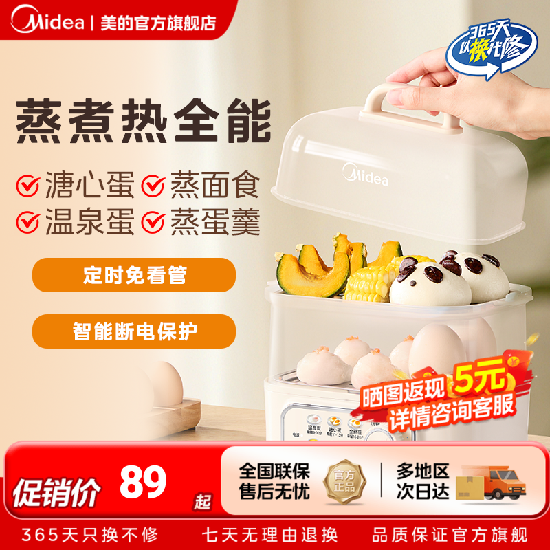 美的煮蛋器不锈钢家用蒸蛋器小型多功能双层自动断电宿舍官方正品