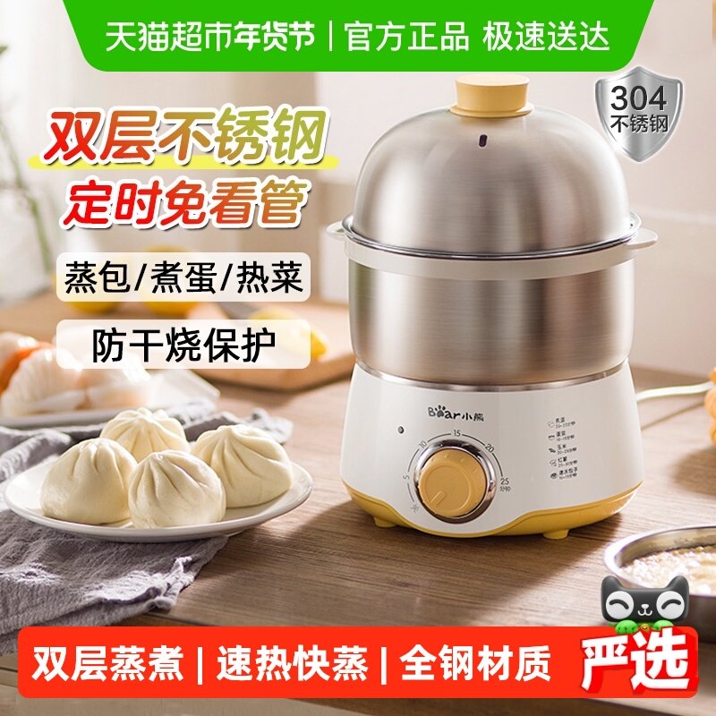 小熊煮蛋器家用双层不锈钢迷你定时蒸蛋器自动断电宿舍蒸煮早餐机