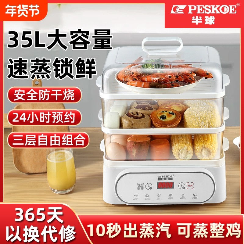 大容量2025新款电蒸锅家用式三层多功能自动断电蒸笼蒸煮可预约