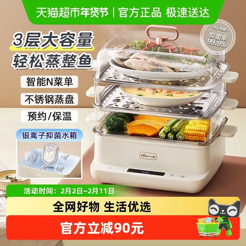小熊电蒸锅多功能家用预约定时保温煮蛋器烹饪机不锈钢多层电蒸笼
