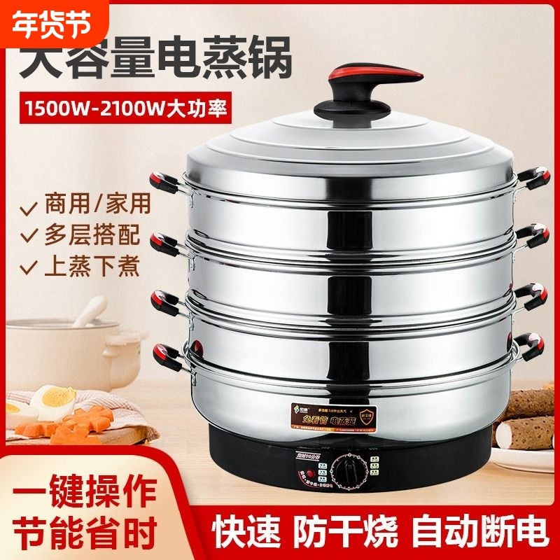 多功能大容量电蒸锅不锈钢多层电蒸笼蒸菜蒸包子定时保温自动断电