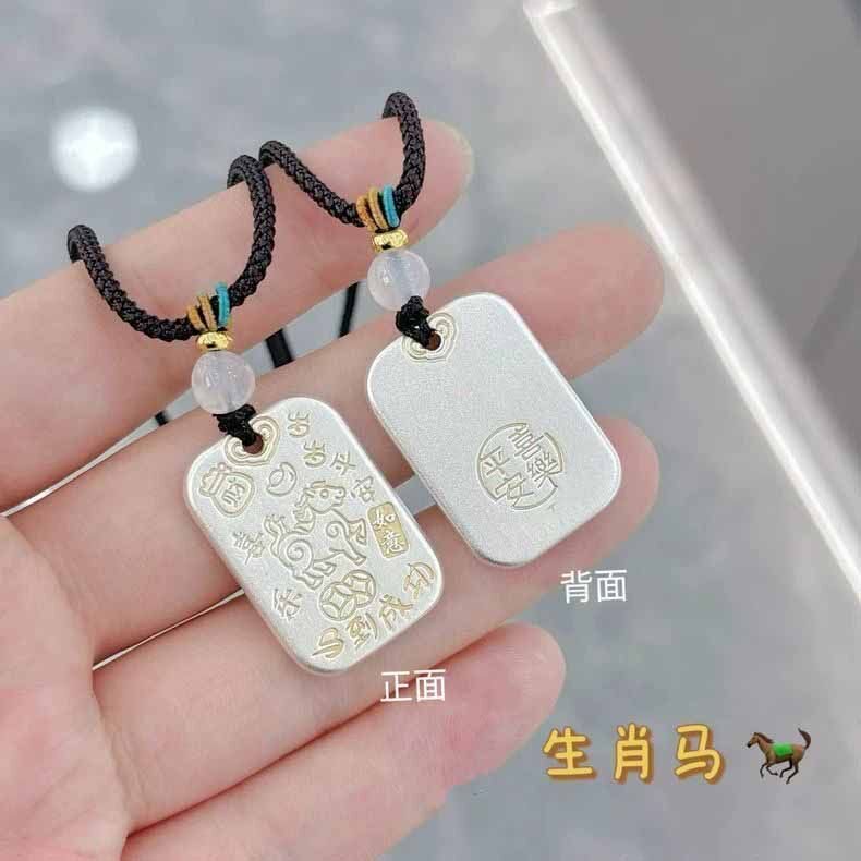 999纯银描金吉言十二生肖属相吊坠鼠牛虎龙蛇马猴鸡儿童女士项链