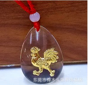 鸡肖 水晶镶金 十二生肖 鸡吊坠 水滴形水晶内镶电镀晶美金批发
