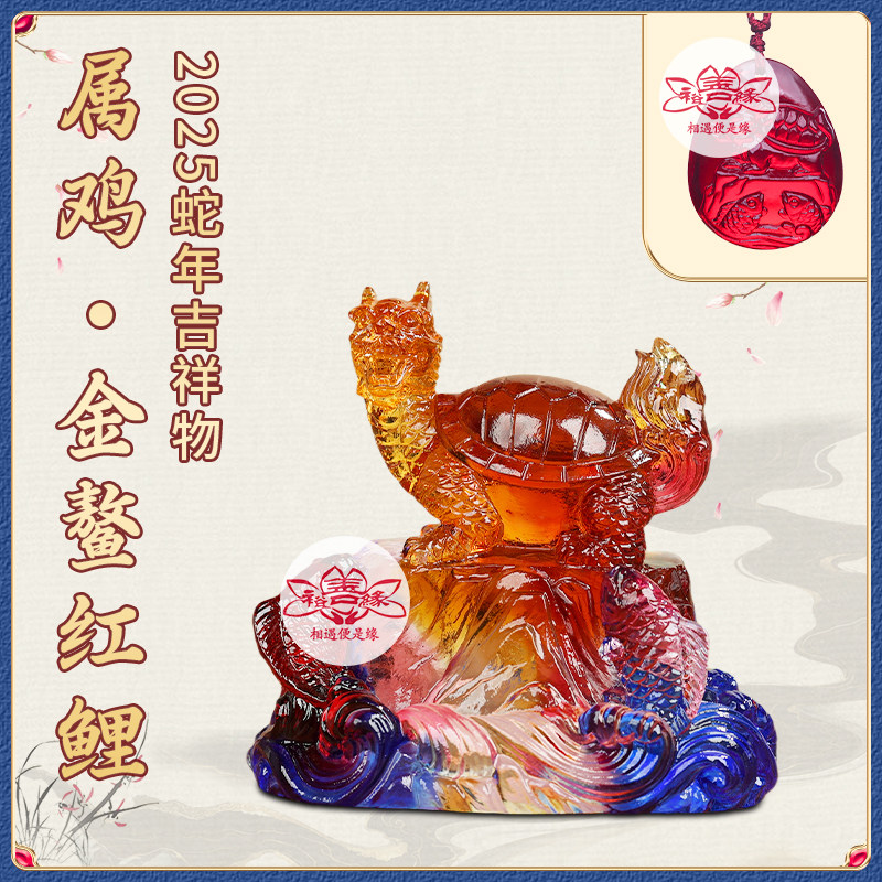 2025蛇年宋韶光吉祥物生肖属鸡金鳌红鲤吊坠宋绍光招财琉璃摆件