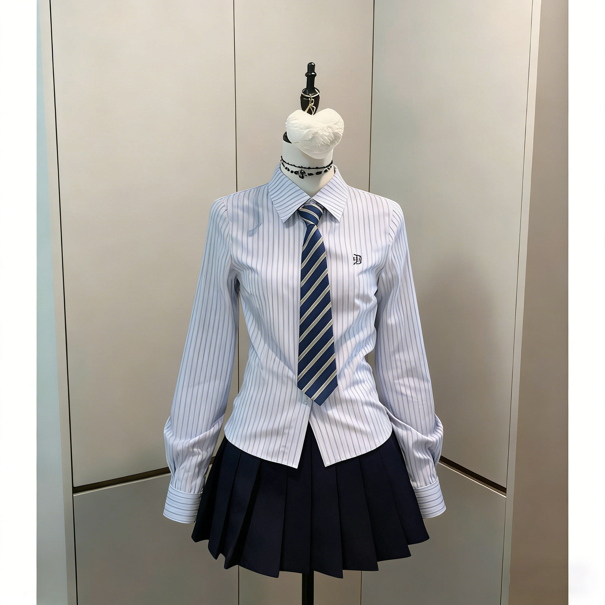 东京岁时记JK制服修身衬衫收腰女长袖条纹上衣学院风新款风琴记号