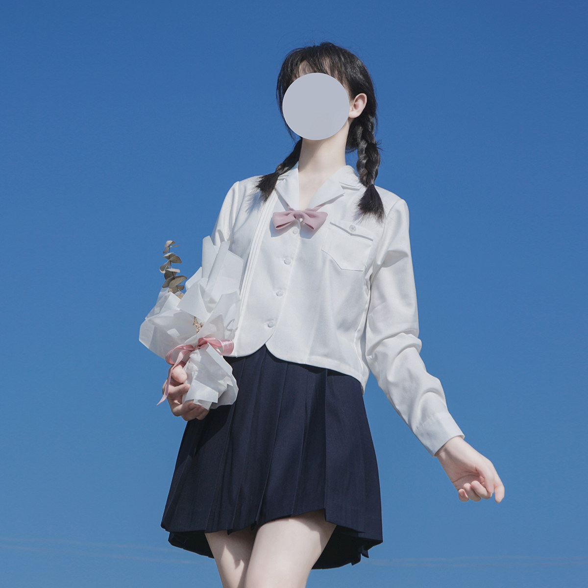 森岛町jk制服衬衫长袖短袖风琴褶基础款校供学院风学生白色衬衣女