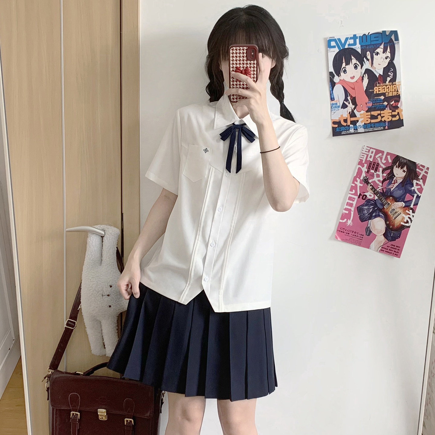 日系jk制服衬衫上衣女短袖夏季学生校供感白衬衣短裙套装上衣班服