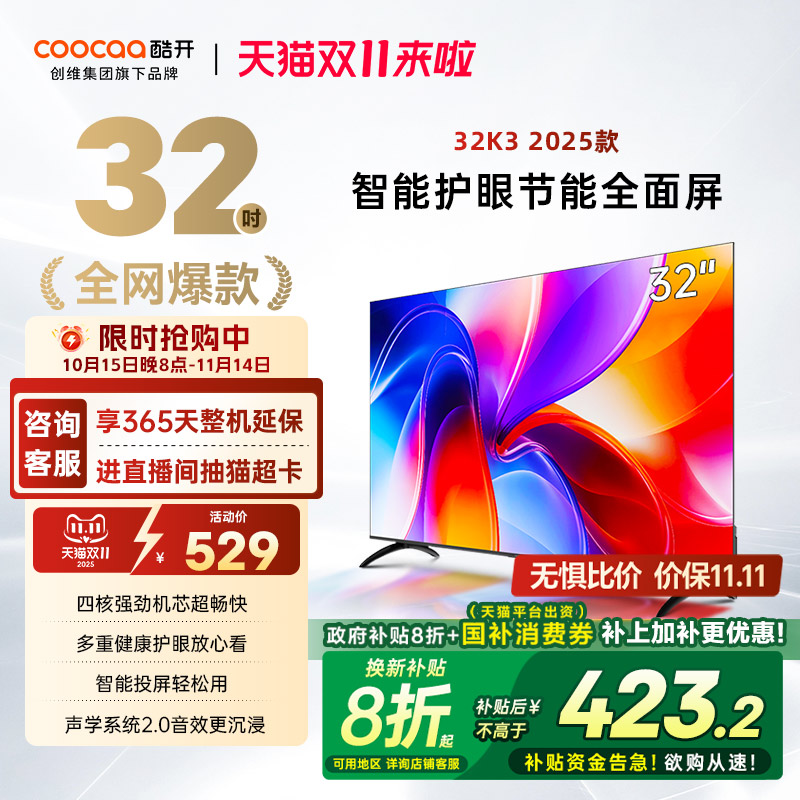 创维酷开新品K3 32英寸高清家用电视机液晶屏幕彩电官方旗舰店40