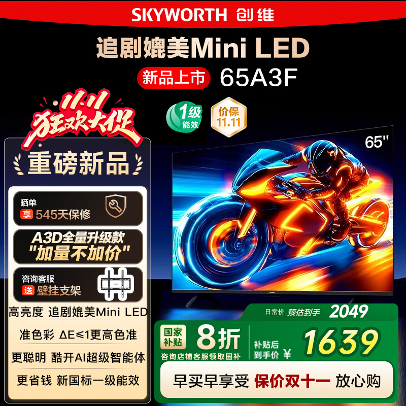 创维电视65A3F 65英寸 144Hz高刷 AI电视机液晶家用 以旧换新补贴