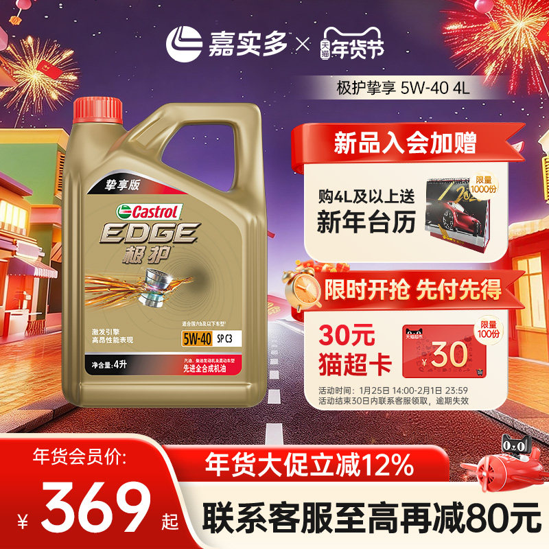 嘉实多机油极护5W40SP4L挚享汽车保养发动机机油全合成官方旗舰店