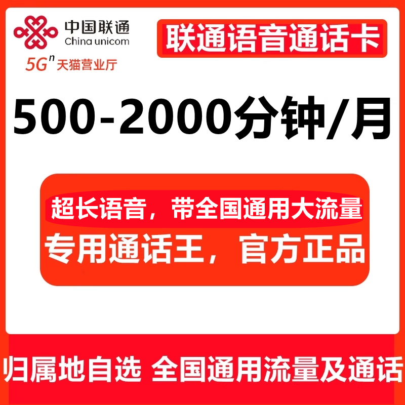 联通手机卡语音卡超长通话卡骑士快递外卖电话卡2000分钟1000分钟