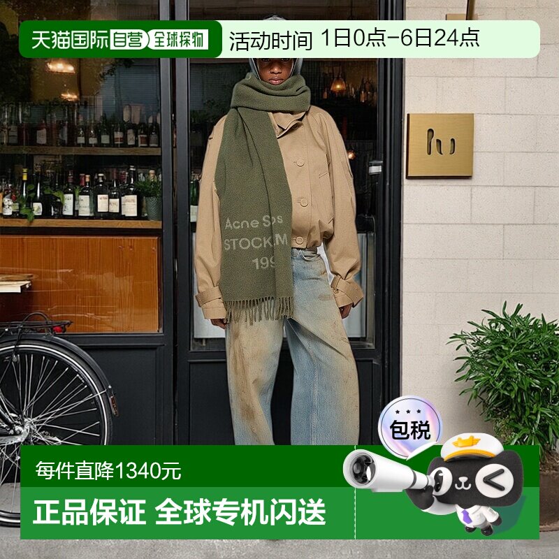 自营欧洲直邮Acne Studios FW25橄榄绿羊毛logo标识围巾男女通用