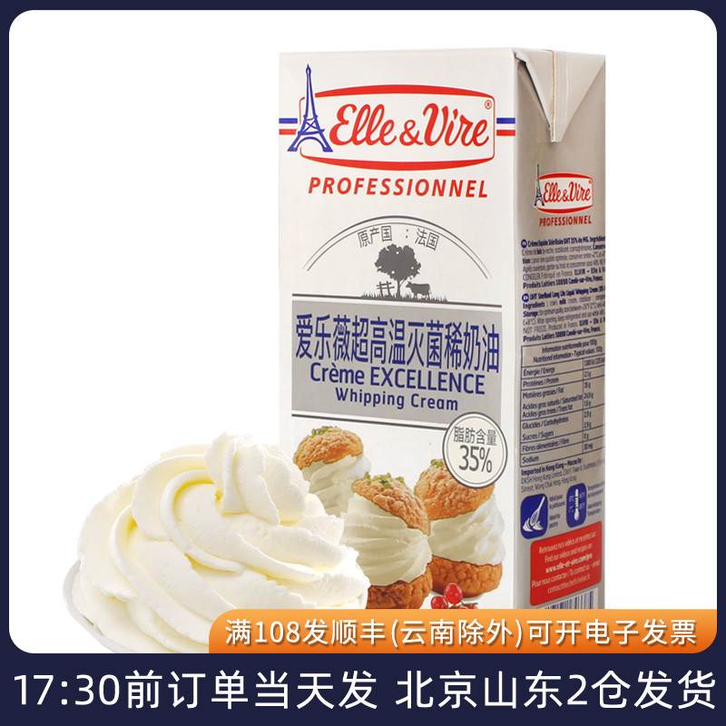 艺鑫烘焙原料法国铁塔淡奶油爱乐薇动物性稀奶油1L乌鲁木齐新疆