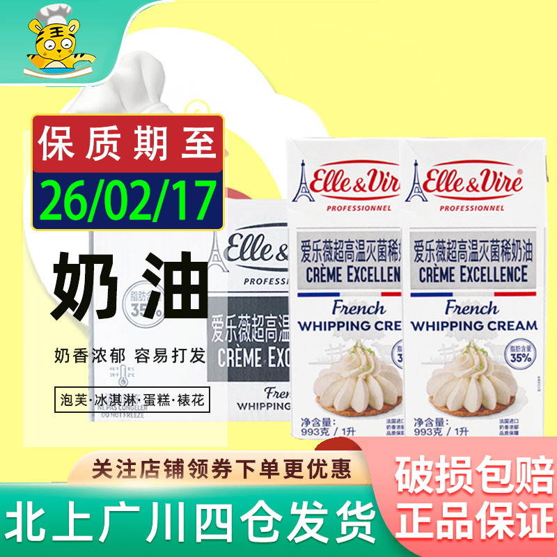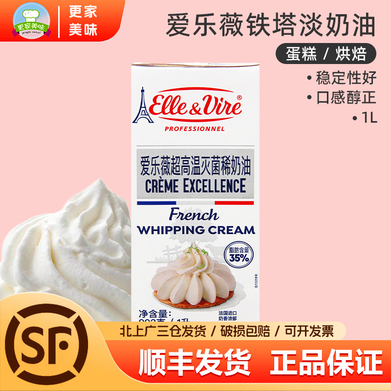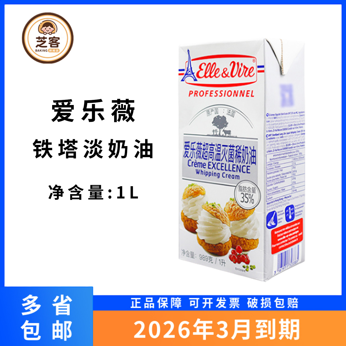 法国进口爱乐薇铁塔淡奶油1L动物稀奶油慕斯蛋糕裱花甜点烘焙原料