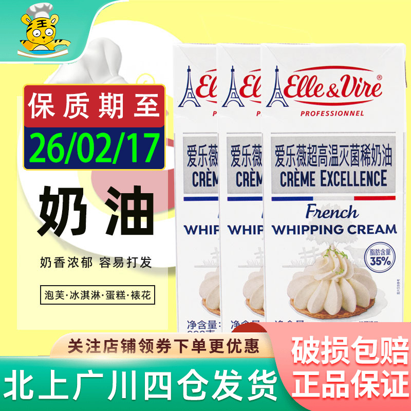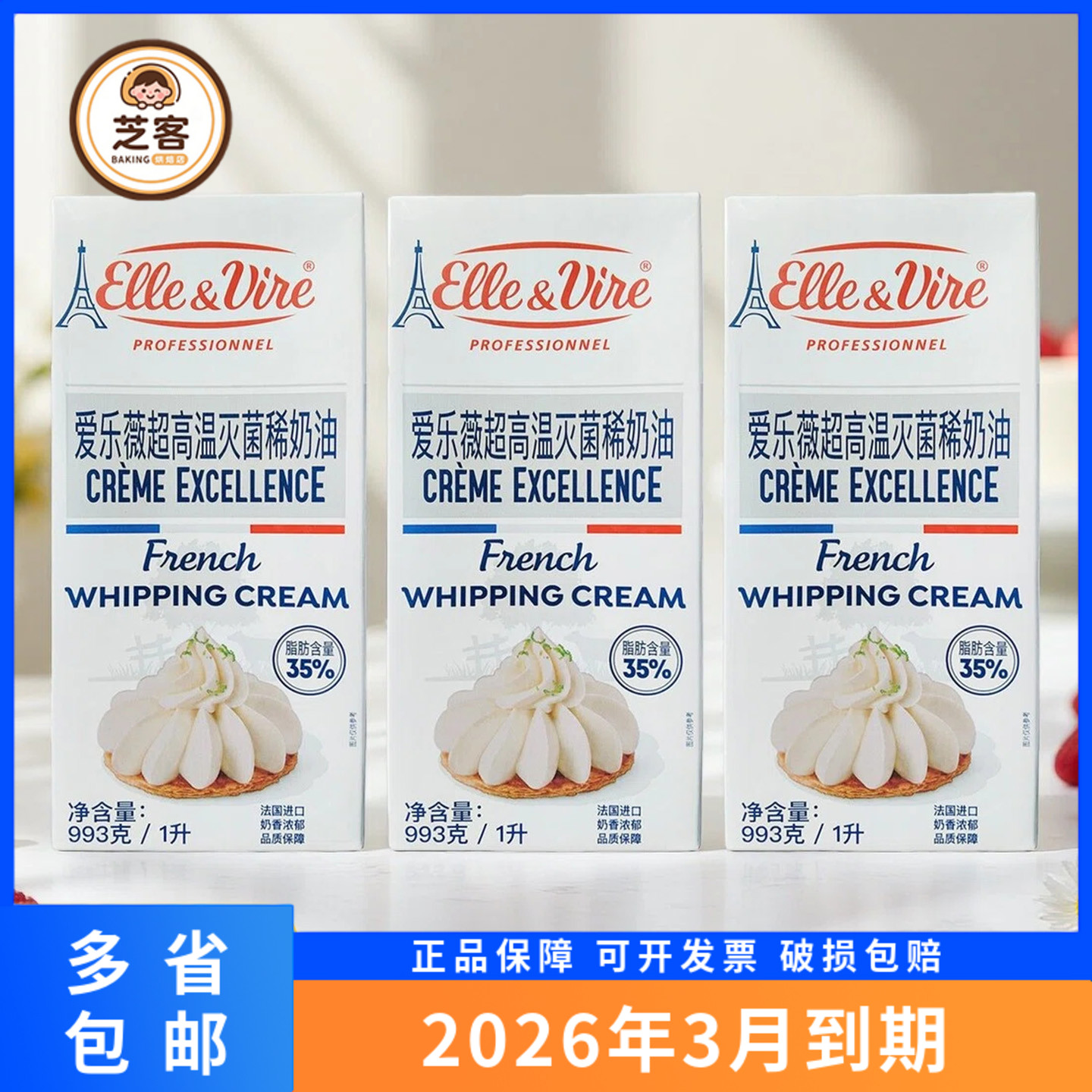 铁塔淡奶油1L*3盒法国进口爱乐薇奶油动物稀奶油蛋糕商用烘焙原料